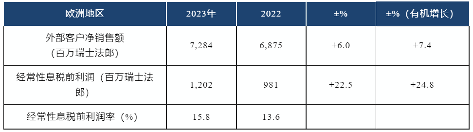 2023年全年净销售额为270.09亿瑞士法郎,同比增长6.1%。2023年经常税前利润达到创纪录的47.60亿瑞士法郎,与上一年相比有机增长14.7%。水泥、骨料和预拌混凝土价格高于成本的积极因素推动了这一创纪录的业绩。